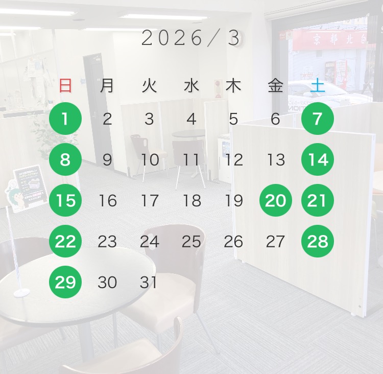 | 休業日 | 日曜日、祝日、年末年始・夏季・GW ※ 1月~3月・10月~12月の土曜日 ※4月~9月の第2・第3土曜日が休日となります。 |