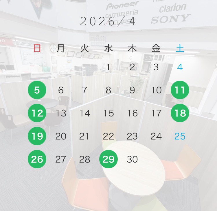 4月~9月は日・祝日・第2第、3土曜日がお休みになります。